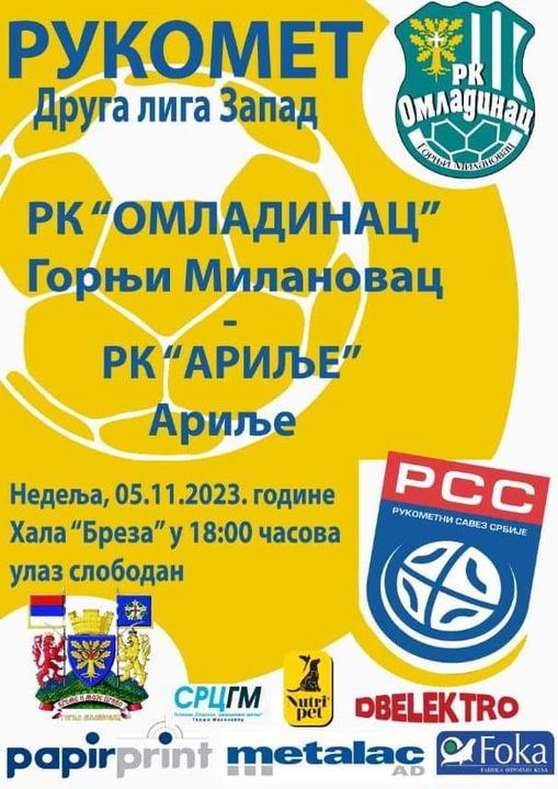 Рукометаши Омладинца са стопостотним учинком дочекују другопласирано Ариље, које има заостатак од једног бода.